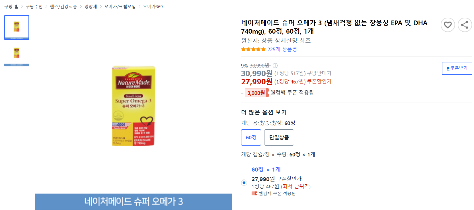 - 합리적인 가격으로 오메가 3를 꾸준히 섭취할 수 있어 가성비가 뛰어납니다.