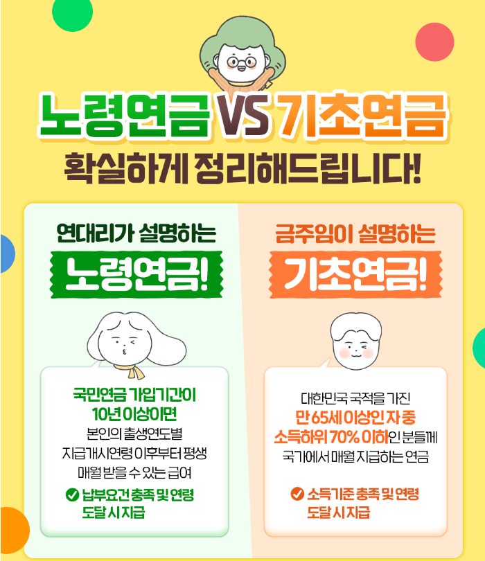 - 기초연금과 병행하면 더욱 안정적인 노후를 보장받을 수 있습니다.