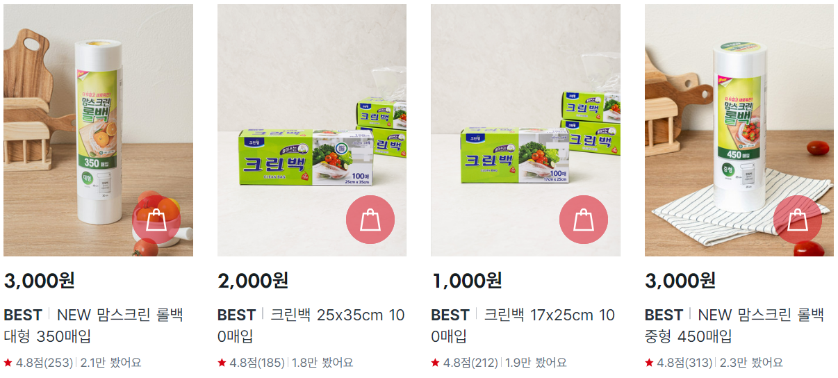 냉동보관, 도시락 포장 등 다용도 사용 가능. 여러 사이즈 구성으로 실용성 GOOD.