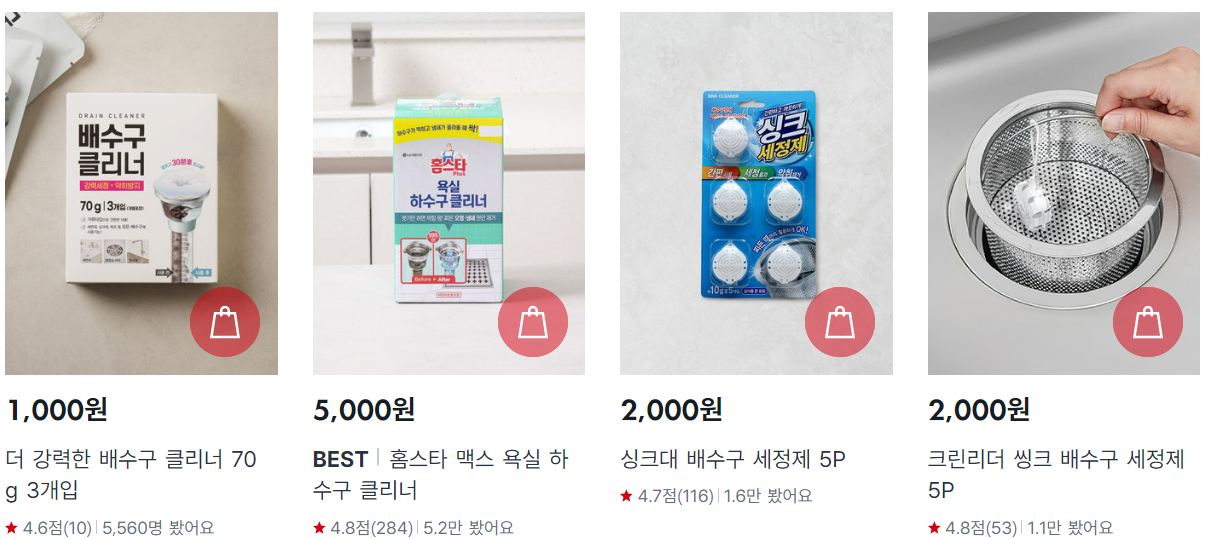 5. 배수구 클리너 (₩1,000)