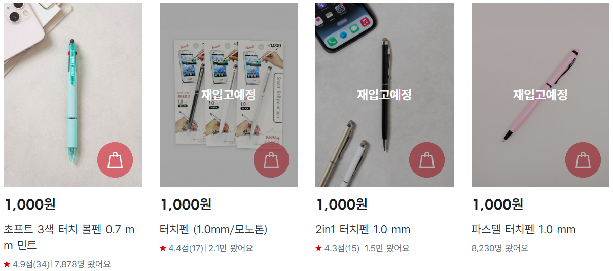 7. 스마트폰 터치펜+볼펜 겸용 (₩1,000)
