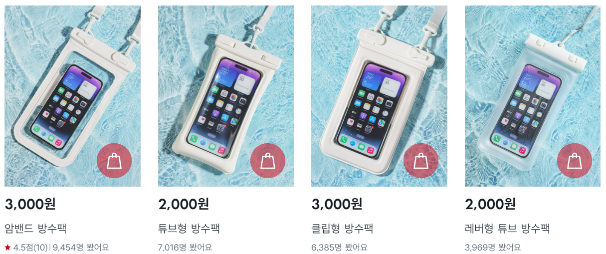 3. 방수 클리어 파우치 (₩2,000)