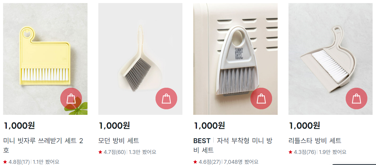 6. 미니 테이블 빗자루+쓰레받기 세트 (₩2,000)