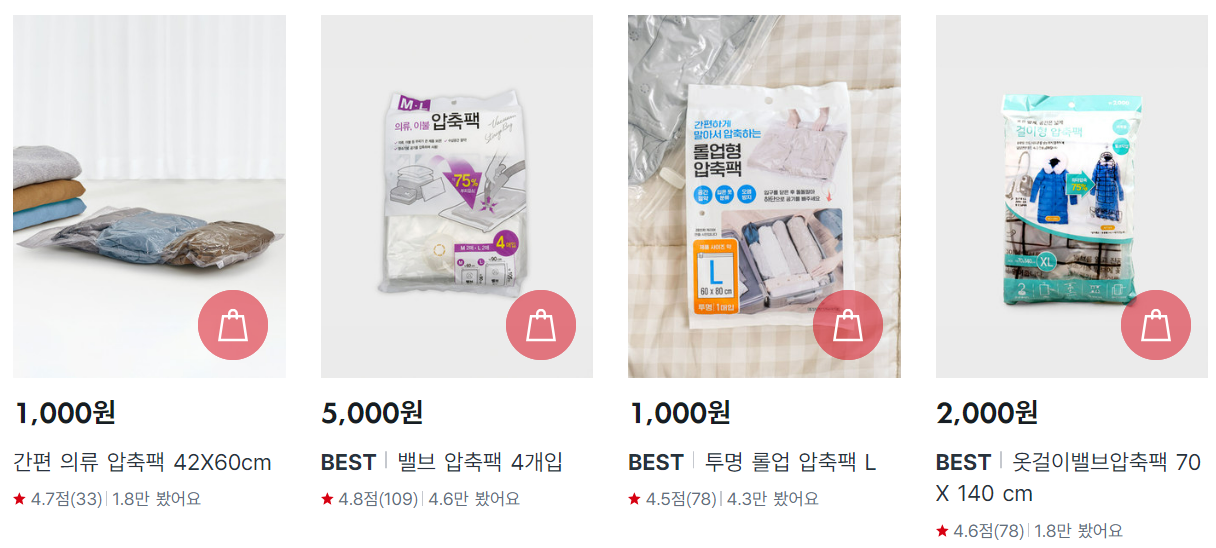 3. 의류 압축팩 (₩1,000~₩3,000)