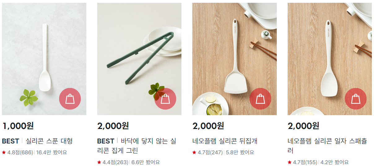5. 실리콘 조리도구 (₩1,000~₩3,000)
