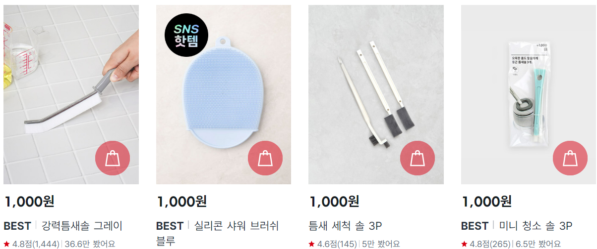👉 수납박스, 실리콘 조리도구, 셀카봉, 계절상품(모기퇴치템, 온열기기) 등이 대표적입니다.