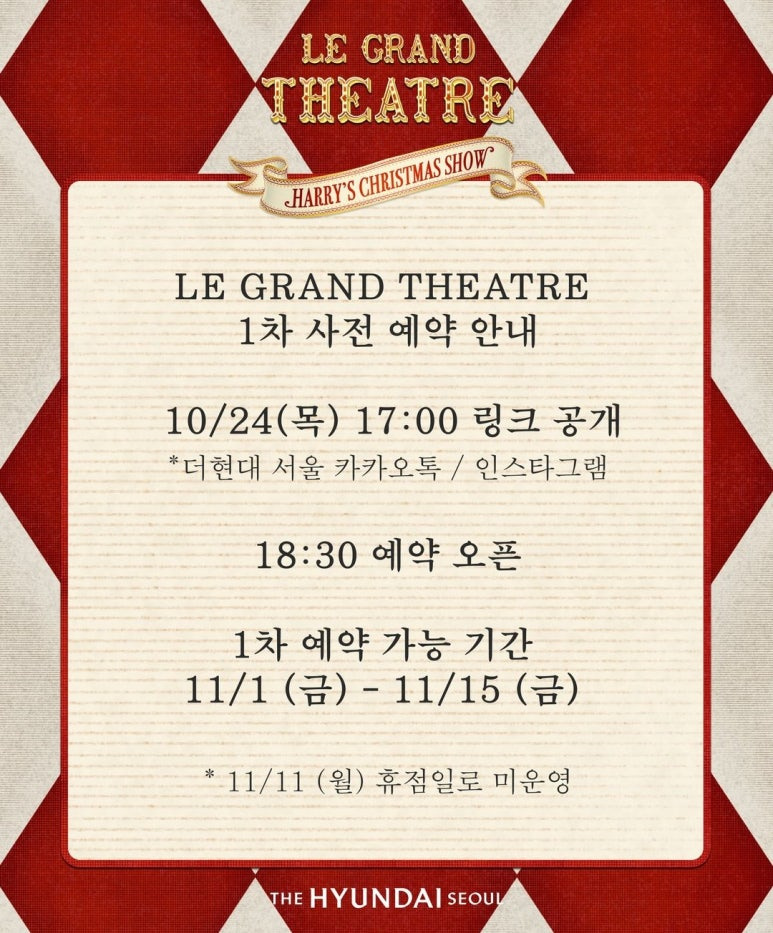 - 예약 링크 확인: 예약일 하루 전인 10월 23일(수) 오후 5시경, 예약 링크가 더현대 서울 인스타그램과 카카오톡 플러스친구를 통해 공개됩니다.