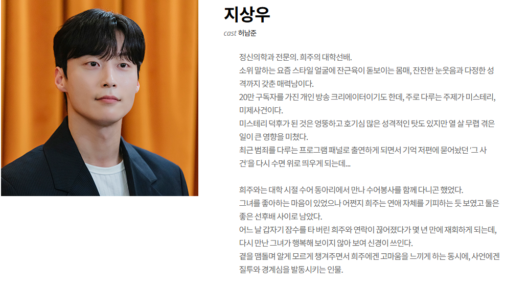 - 홍희주의 대학 선배로, 그녀의 행복을 진심으로 바라는 인물.